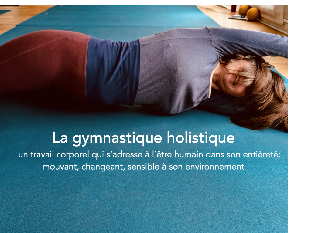 La gymnastique holistique s’appuie sur les principes suivants : – La détente active, – Le placement articulaire juste, – L’équilibration de la posture, – L’attention au mouvement, aux sensations et à la respiration. En pratiquant avec attention des mouvements construits sur des bases anatomiques et physiologiques précises et rigoureuses, nous observons et pouvons sentir les crispations inutiles qui créent des dysfonctionnements, engendrent des douleurs, voire des pathologies. En changeant nos habitudes, nous faisons place au changement physique, psychique et comportemental dans le quotidien et dans la durée. Chacun d’entre nous est amené dans toutes les circonstances de la vie à trouver et retrouver son axe vertical et son équilibre pour être debout, assis, pour marcher et accomplir tâches et activités, c’est un travail adaptatif de chaque instant qui fait appel à notre «6ème sens», la proprioception, la sensibilité très profonde du corps à lui même.